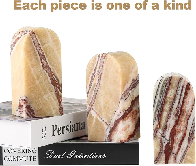 - One-of-a-Kind Beauty: Each pair of bookends showcases distinct natural stone patterns, guaranteeing that yours will be unique and stunning.