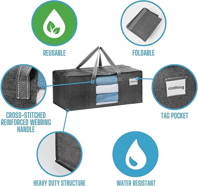 - Multi-Functional- These packing bags serve as the ultimate solution for all your storage needs, whether it's clothes, blankets, or any other items. Built with durability and spaciousness in mind, they're the perfect storage totes for closets, wardrobes, attics, basements, RVs, and beyond. Their stackable and adaptable design makes organizing a breeze, whether at home or in the garage. Plus, their foldable design offers space-saving convenience, allowing for efficient storage between uses.