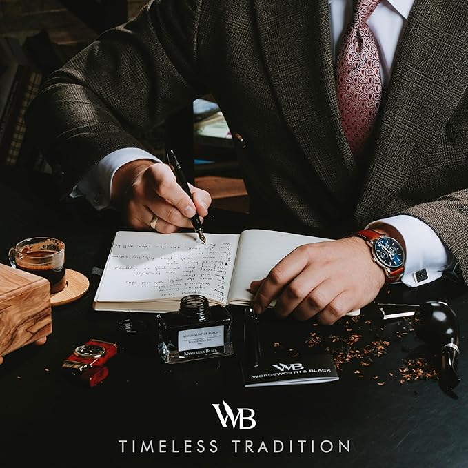 - ✒️Discover The All-inclusive Refillable Fountain Pen Set - Includes luxurious Majesti fountain pen, ink converter, 12 x blue ink cartridges, 12 x black ink cartridges, premium leather pen case, and a deluxe gift box - ready to be gifted. Included with every order is a complete instruction booklet for your Wordsworth and Black Pen Set. All the information you'll need to get started using and enjoying your luxurious writing tool will be right at your fingertips!