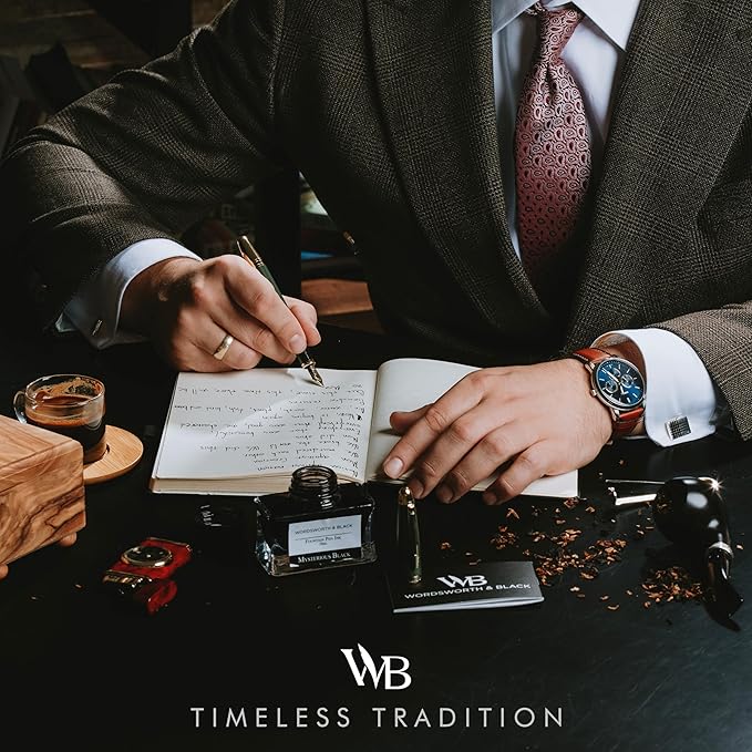 - ✒️Discover The All-inclusive Refillable Fountain Pen Set - Includes luxurious Majesti fountain pen, ink converter, 12 x blue ink cartridges, 12 x black ink cartridges, premium leather pen case, and a deluxe gift box - ready to be gifted. Included with every order is a complete instruction booklet for your Wordsworth and Black Pen Set. All the information you'll need to get started using and enjoying your luxurious writing tool will be right at your fingertips!