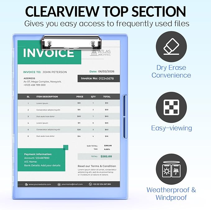 - Dry Erase Top Compartment: The transparent top section is compatible with dry erase markers (not included) and perfect for writing or reusing the same paper. Keeps your rosters and playlists dry and safe even on bad rainy days and gives you easy access to frequently used documents