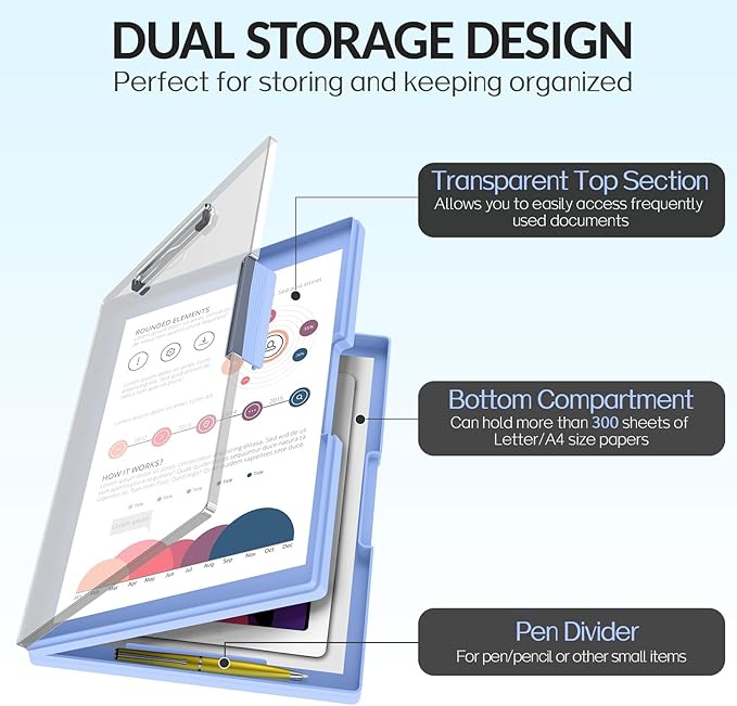 Sooez Clipboard with Storage, Heavy Duty Cleaview Clip Boards 8.5x11 with Dual Storage, Dry Erase Plastic Nursing Clipboard, High Capacity Clipboards Folder for Teacher Nurse, School & Office Supplies