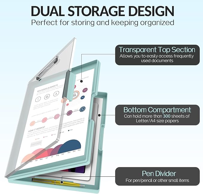 Sooez Clipboard with Storage, Heavy Duty Cleaview Clip Boards 8.5x11 with Dual Storage, Dry Erase Plastic Nursing Clipboard, High Capacity Clipboards Folder for Teacher Nurse, School & Office Supplies
