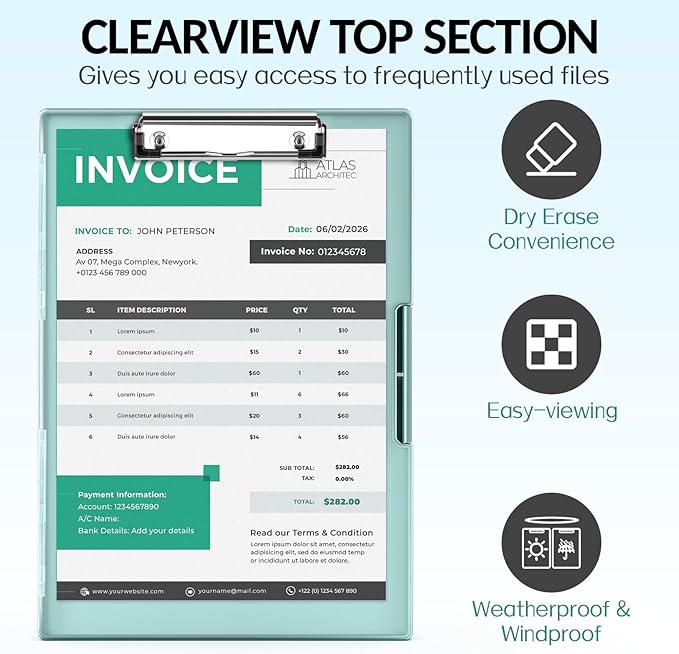 - Dry Erase Top Compartment: The transparent top section is compatible with dry erase markers (not included) and perfect for writing or reusing the same paper. Keeps your rosters and playlists dry and safe even on bad rainy days and gives you easy access to frequently used documents