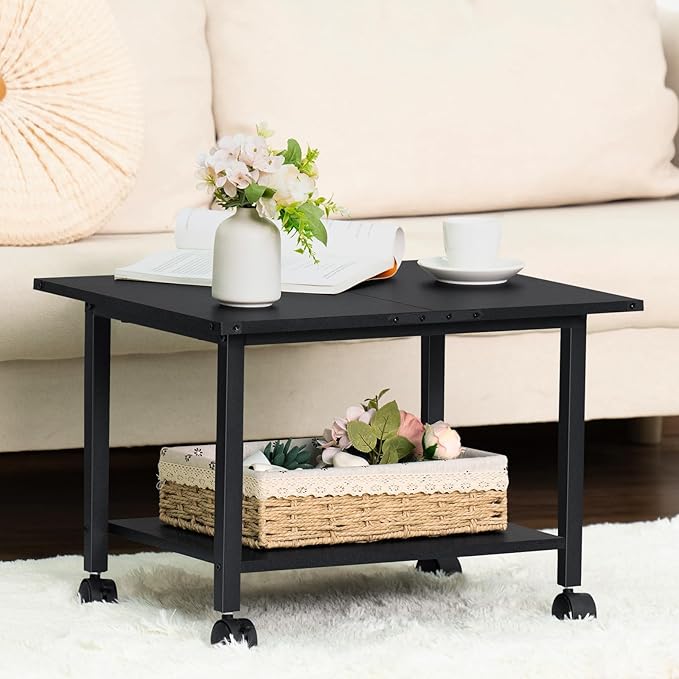 - [Rolling or Fixed] The printer stand is designed with roller wheels, which can be easily moved to any place. Our printer table can also be placed under the desk. Four swivel wheels can rotate 360 degrees, two wheels can be locked to keep the stand stable. It provides higher security for your printer and other office equipment.