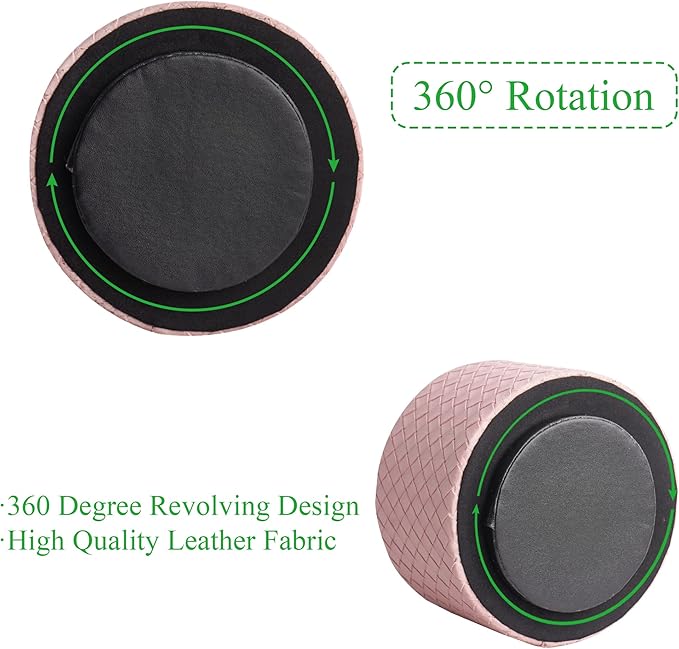 Hennaja Round Leather Art Supply Organizer,Remote Control Holder,360 Degree Spinning,Multi-Functional Pencil Holder,4 Compartments Desktop Stationary Organizer(1-Weave Pink)