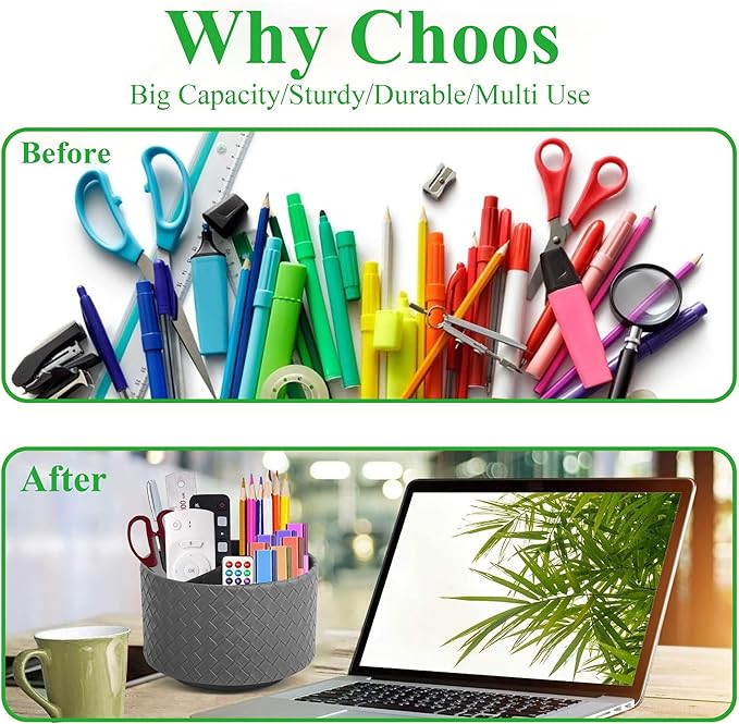 - ✎360° Revolving Design: You can freely rotate the pen holder steadily left and right,unique spinning base design allows easy access to items from any directions.The non-slip pads on the bottom keep it stay in place when rotating.