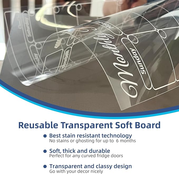 - Non-magnetic calendar - Keep your life organized with this stylish transpatent non-magnetic calendar. Perfect for tracking events, goals and appointments.