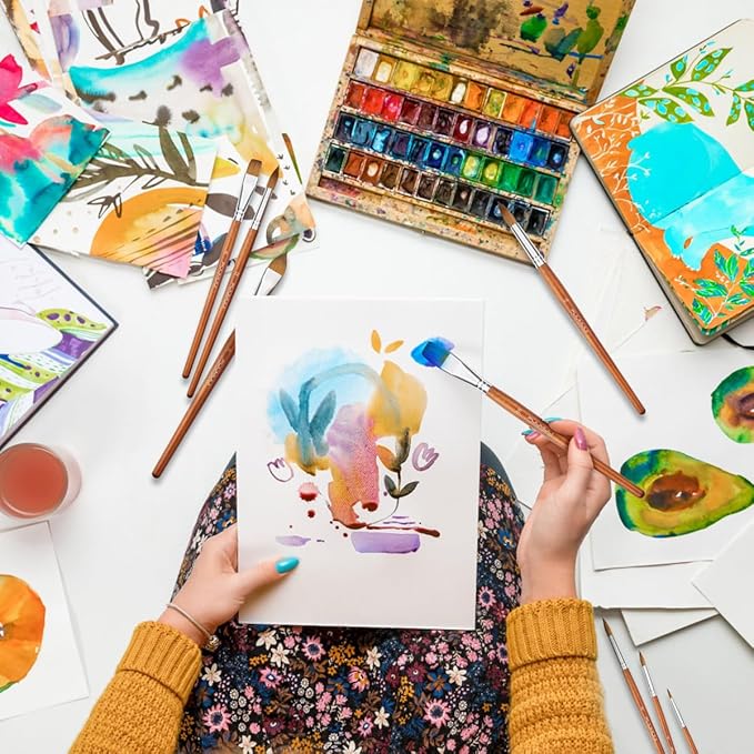 - Short and Comfortable Handles - Whether you are a professional painter looking for new art supplies or a beginner just start to enjoy painting, this watercolor brushes for artists will surely provide a new level of finesse and control in your painting. The short, ergonomic handle ensures you no-slip grip, precision, and ease of usage, prevent hand fatigue caused by long brush handle.