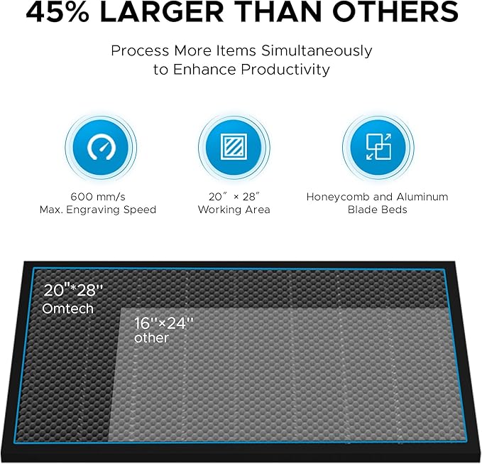 - Room for Big Ideas: With our spacious 28"x20" workspace and four-way pass-through doors, you'll have plenty of room to handle both delicate engravings and large-scale designs effortlessly, no matter the project size