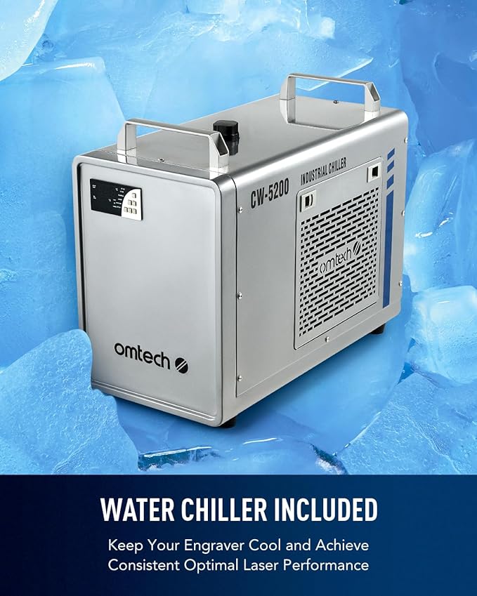 - Commercial Laser Cutter Bundle: OMTech's 90W CO2 laser engraver comes with a water chiller and LightBurn software to provide consistent laser performance and intuitive navigation for your work