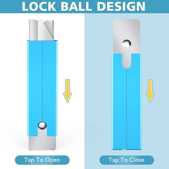 - Fast-paced Operation: Tap to open, tap to close, and the blade slides completely into the outer mental sheath. And itβs a razor blade utility knife that can be used as a razor scraper for scraping off stickers or paint residue on windows, tiles, boxes, concrete, and walls.