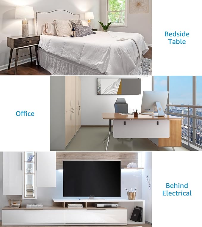 - Excellent Installation Design: Under desk mount plug with 3M adhesive, you can freely install where you want to install. Easy to slide out of holster when needing to remove it temporarily. Can be mounted under a table and comes with a 10-foot cord, saving space and saying goodbye to clutter and the annoying scene of bending over to find an outlet on the floor.