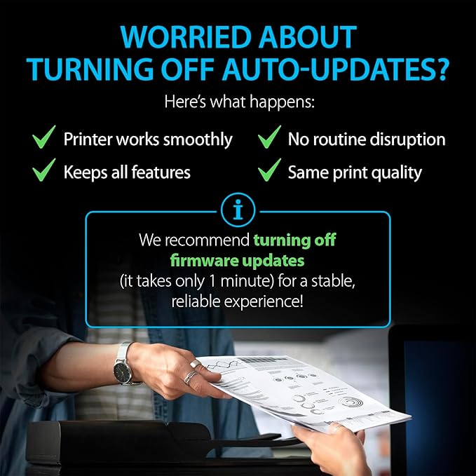 - Before Installation: Please turn off firmware updates on your printer control panel to ensure uninterrupted printing with Smart Ink 206A toner cartridges in your HP Color LaserJet Pro MFP M283fdw or other compatible models listed above