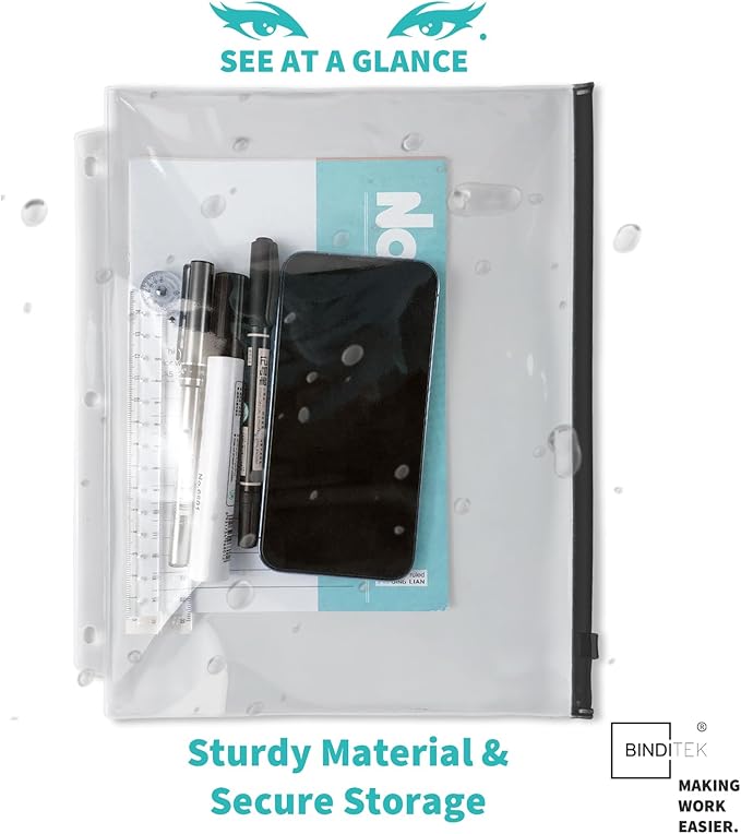 - 【Sturdy Material and Secure Storage】 Made from flexible, tear-resistant PVC with reinforced sealed edges, these clear binder pouches help protect contents from water, dust, and damage. The transparent finish allows for quick viewing of stored items.