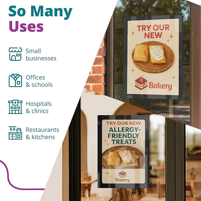- IDEAL FOR CHANGEABLE SIGNAGES: These clear adhesive holders work great for retail shops, cafes, medical offices, salons, and any business that needs changeable signage visible from outside. Display your hours, daily specials, safety notices, or promotional flyers right on your glass doors and windows. Customers can read everything clearly from the street while your documents stay protected inside.