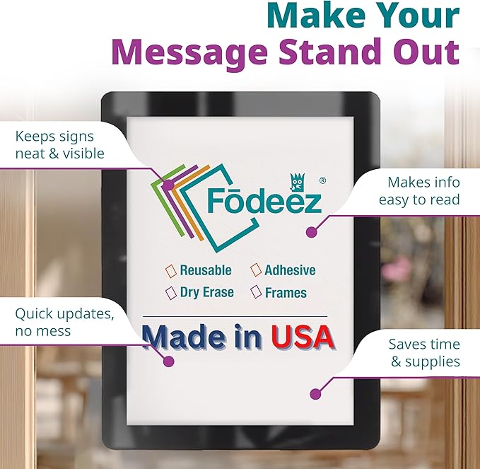- REUSABLE 100s OF TIMES: Get more for your money! These frames stick securely and can be used again and again. They're your cost-effective solution for long-term use, ensuring your messages are always on display, without any hassle. Enhance your signage with vinyl display frame that opens, 8.5x11 acrylic sign holder, 8.5 x 11 acrylic sign holder, sheet protectors 8.5 x 11, out to lunch signs for office door, and out of office wheel for door.