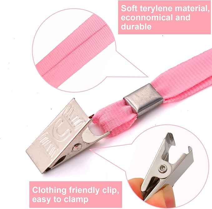 - Durable material: the name tag holder is made of PVC material, lightweight, waterproof and can keep dirt and moisture away; The lanyard is made of terylene material, which is lightweight but strong; The metal clip is not easy to rust, and is easy to clamp and loosen items with lanyard ends or holes