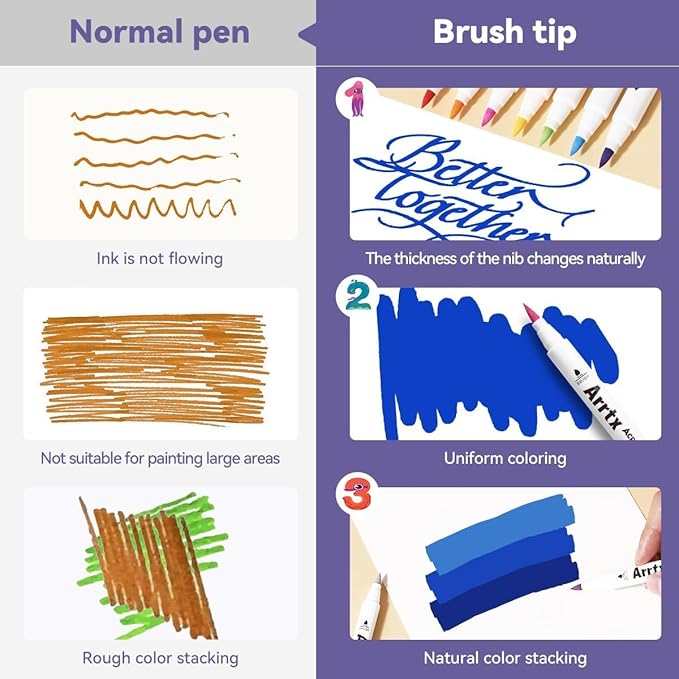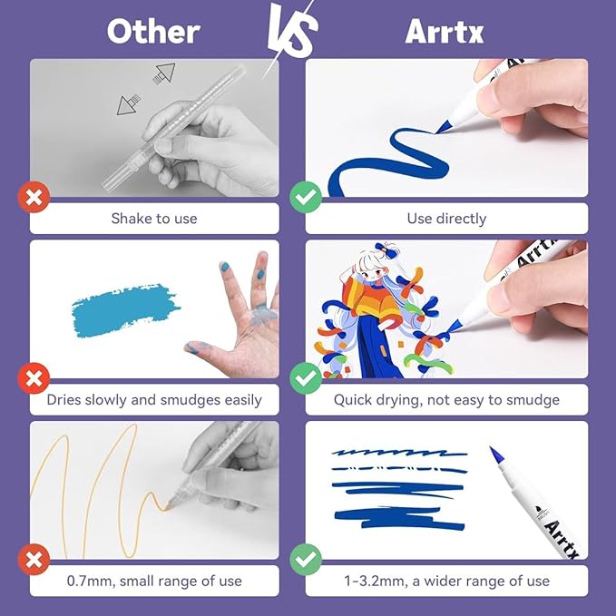 - Safe and Non-toxic - Arrtx drawing markers set adopts water-based environmental protection pigment ink, which is non-toxic, tasteless, waterproof, and high temperature resistant. With high-quality certificated ink makes these painting pens safe and suitable for adults for all kinds of DIY paintings.