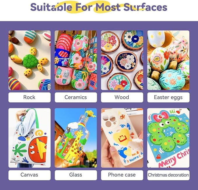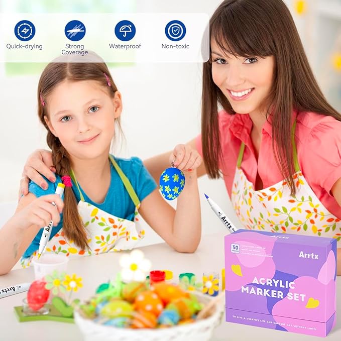 - Work Well on Diverse Surface-Arrtx acrylic markers set provides water-based smooth ink and excellent coverage for a variety of surfaces, works for paper, cardstock, metal, rock painting, wood, plastic, canvas, fabric, stone, Easter eggs, easter decoration, metal, Christmas ornament, Halloween pumpkin painting, calligraphy, scrapbook, brush lettering, Christmas card, birthday gifts, greeting card, or any DIY crafts projects and more. Let's express imagination!