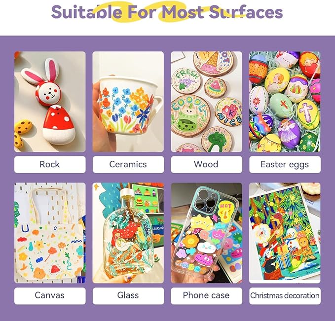 - Work Well on Diverse Surface-Arrtx acrylic markers set provides water-based smooth ink and excellent coverage for a variety of surfaces, works for paper, cardstock, metal, rock painting, wood, plastic, canvas, fabric, stone, Easter eggs, easter decoration, metal, Christmas ornament, Halloween pumpkin painting, calligraphy, scrapbook, brush lettering, Christmas card, birthday gifts, greeting card, or any DIY crafts projects and more. Let's express imagination!