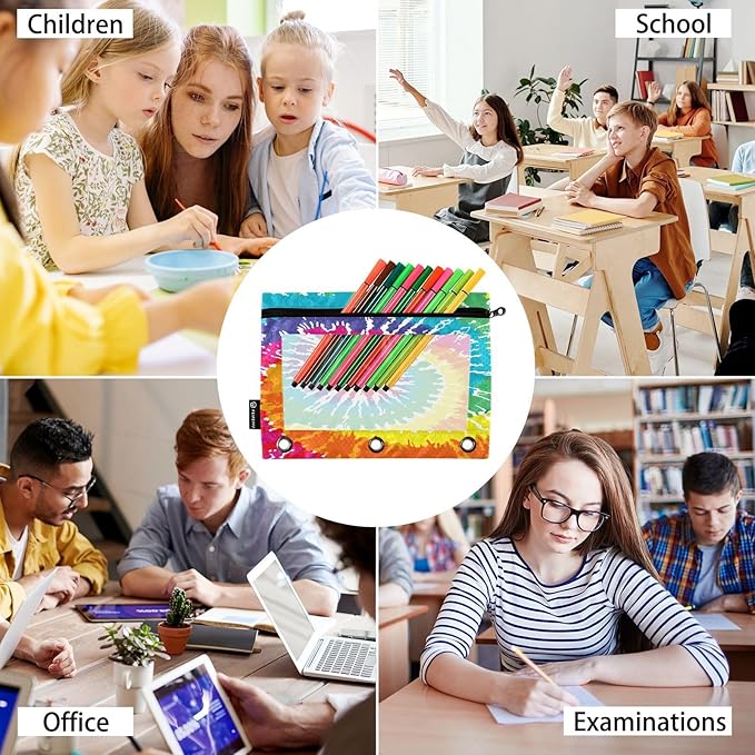 ALAZA Pencil Pouch for 3 Ring Binder, Tie Dye Binder Pencil Pouches with Clear Window Zipper Pencil Case Cosmetic Bags for Office College Supplies, 2PCS