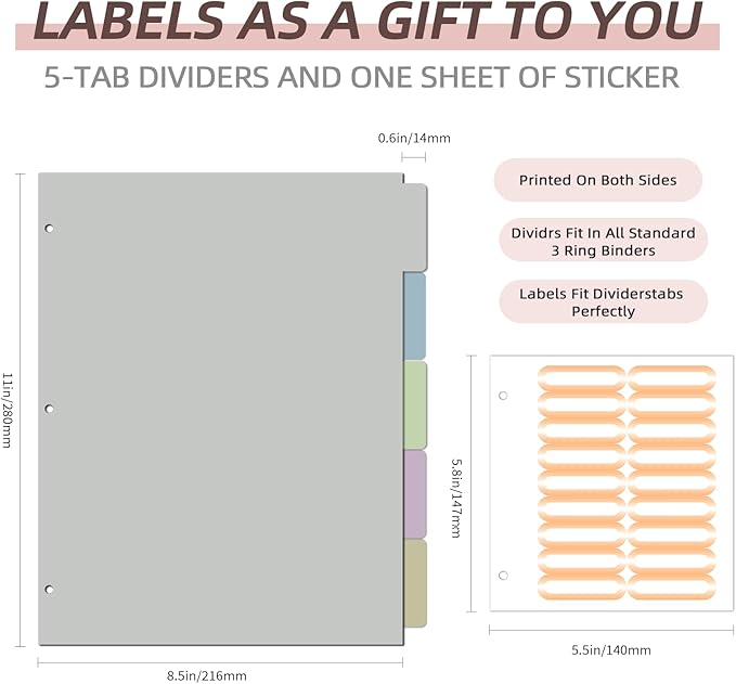 - 【Versatile】1 inch sturdy round ring, can hold 200 sheets of paper securely. The interior features two pockets to store letter-sized documents and important loose papers. Also comes with a divider for 5 tabs and a sheet of stickers (the tabs fit perfectly into the divider) for easy organization. The design of the clipboard is convenient for fixing paper and taking it out for writing at any time.