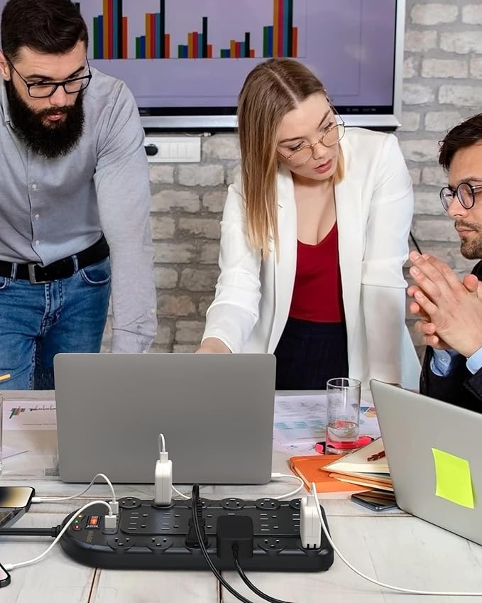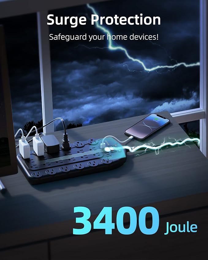 - 【Safeguard Your Devices】-This long outlet power strip has a 3400-Joule energy rating providing a reliable surge protector to protect any meeting room, office, personal workstation, or urround sound system.