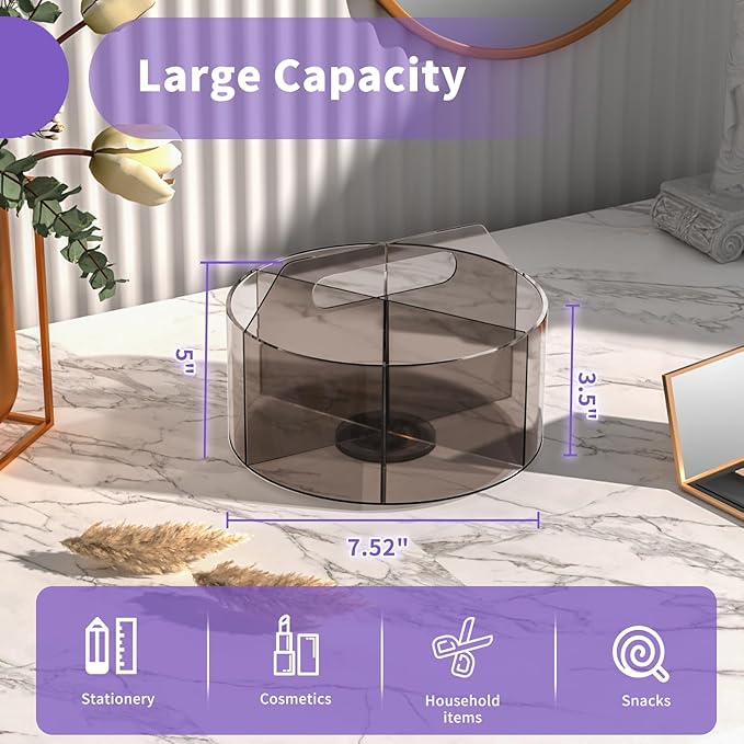 - Ultra-Large Capacity: Extra large rotating desk organizer size diameter: 7.48", height: 3.46". This acrylic pen holder is divided into 6 compartments, you can sort different types of pens, crayon, highlighters, markers, art supplies, etc into different sections,which greatly improves the convenience!