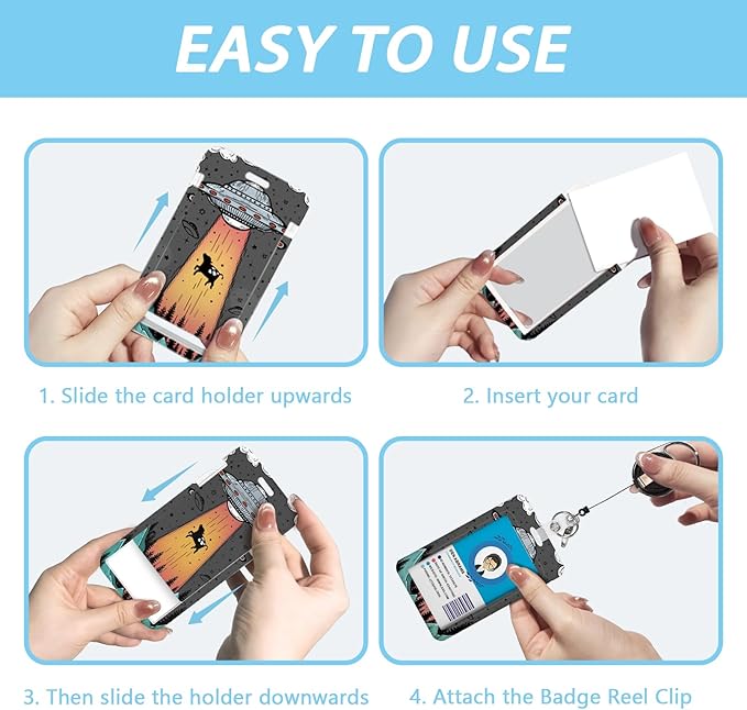 - Novelty Badge Reel: This funny badge reel is designed with funny UFO arts about World Farm Animal Day. The cute and interesting badge reel will always bring more happiness and fun to your life. The set includes a detachable lanyard, heavy duty badge reel, and card holder, great for personalizing your work accessories