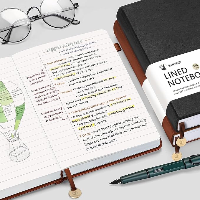 - 366 PAGES THICK HARDCOVER JOURNAL: This 5.7 in by 8.3 in lined notebook, classic college notebook, total 366 pages, including 64 tearable pages, the number of pages is more than a year, which is perfect for long-term journals for writing.