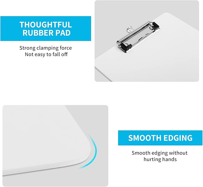 - EASY TO ACCESS: When you want to view files anytime, anywhere, you can clip them onto the board without worrying about paper falling or being wrinkled.The sturdy board clip can accommodate 80-100 sheets of A4 letter size paper.
