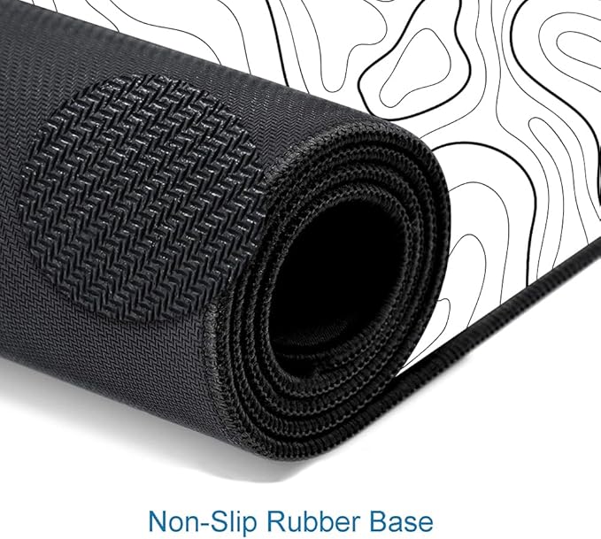 Mouse Pad Large, Extended XL Gaming Mousepad, Non-Slip Rubber Base Minimalist Keyboard Mouse Mat Desk Pad for Work, Game, Office, Home, 31.5 x 11.8 in, White Topographic Map Lines