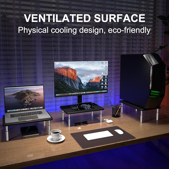 - SIMPLE ASSEMBLY - Our monitor laptop stand riser comes with 1 platform and 4 legs, all you need to do is just screw the 4 legs into the platform. No tools required. One minute is enough.