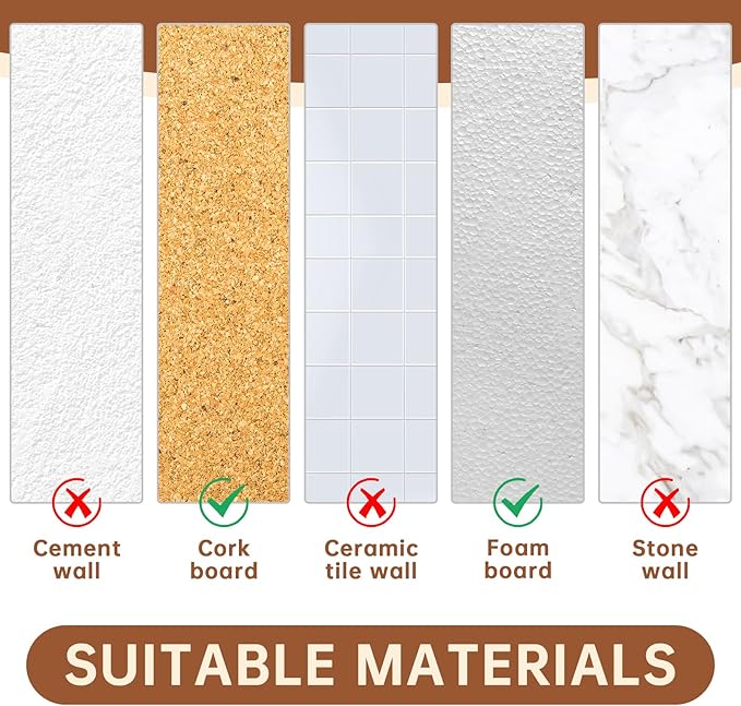 - 【Wide Application】These decorative tacks to fix photos, posters, cards,memos and calendars on cork boards, bulletin boards,foam boards, and walls,as well as for handicraft or to mark locations, points of interest, and travel routes on maps. Not suitable for solid walls.