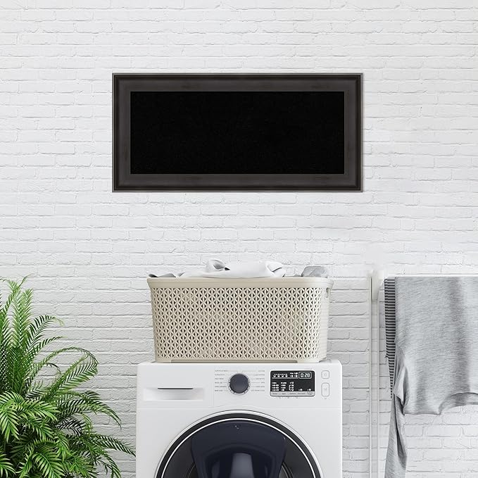 Amanti Art Black Cork Board for Wall, 16x34 Vision Board with Black Wood Frame, Medium Corkboard Office Decor for Home Organization, Casual Corkboard Pinboard to Display Items for Home Organization