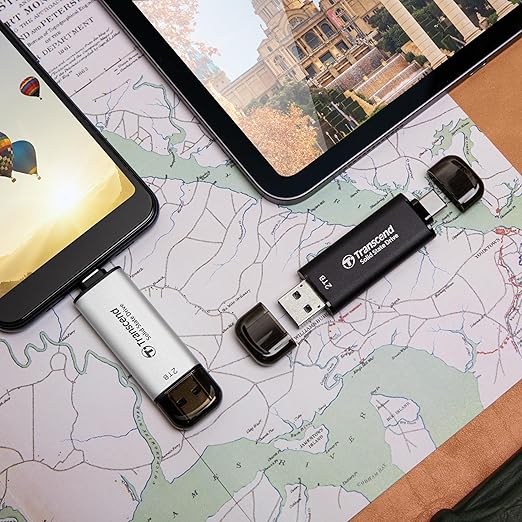 Transcend 512GB USB C External SSD, Up to 1,050MB/s, USB 3.2 Gen 2 Flash Drive, 2-in-1 Memory Stick Type C &Type A, Thumb Drive Photo Stick for Windows, Mac, iPhone, iPad, Android, Tablet&PC, Smart TV