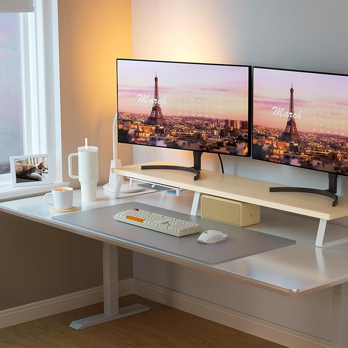 - Computer Monitor Riser: Elevate your monitor or computer to an ergonomic height, promoting an ideal sitting posture and reducing eye strain, neck stiffness, and back pain. This monitor desk riser helps you maintain comfort and productivity throughout the workday by supporting a healthier workspace setup