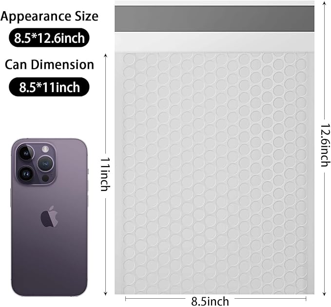 - <b>✨【Bubble Mailers Size】</b> Exterior Size: 8.5 x 12 inch. Usable size: 8.5 x 11 inch. our mailer envelopes are lined with unique air cellular layers and 360°strong air bubble technology, which can help absorb shock during shipment and provide effective shipping protection for your products.<br>