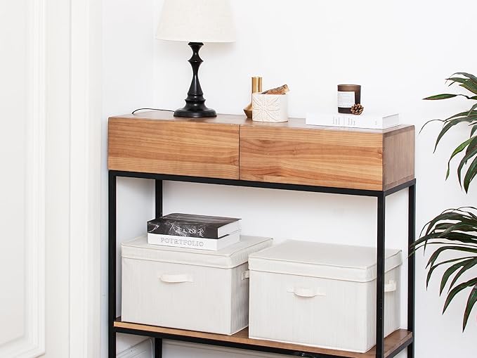 - Dust-proof storage bins feature flip-top lids and 3 soft sewn-in handles on the front and both sides.