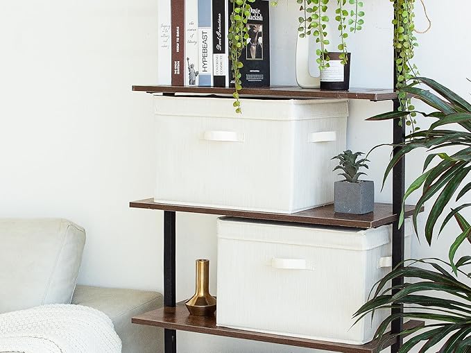 StorageWorks Closet Storage Bin with Lids, Decorative Storage Boxes with Handles, Fabric Storage Bins for Clothes, Jumbo, Mixing of Beige, White & Ivory, 2-Pack