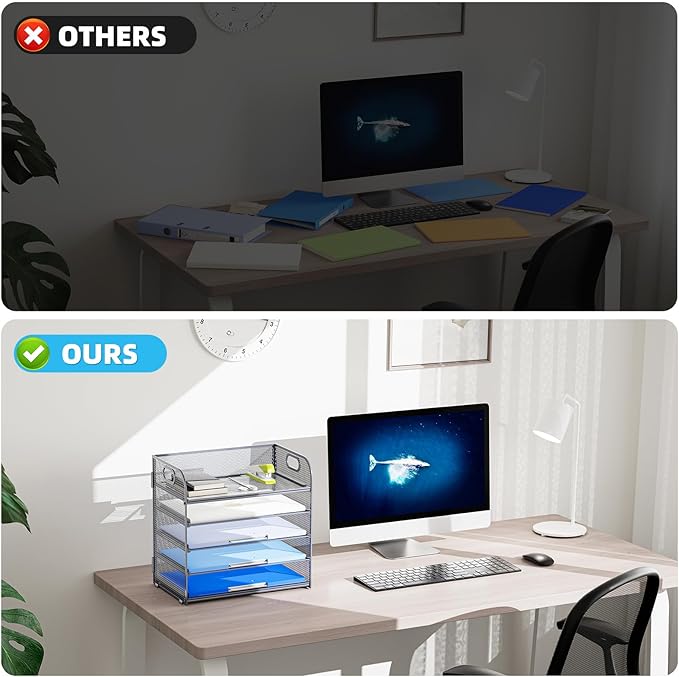 - 【MULTI-PURPOSE ORGANIZER】5-tier layered design and large capacity make the paper organizer become an ideal choice for managing all kinds of letter-size letters, paper, books, bills, etc. Let you quickly identify the contents of each compartment super easy!