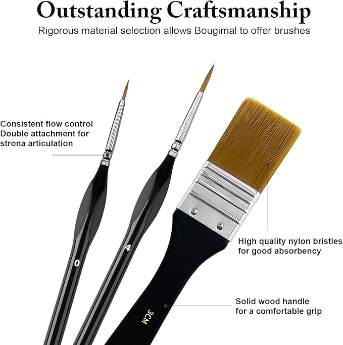 Bougimal 28 Pcs Paint Brushes for Acrylic Painting, Premium Nylon Bristles with Round, Filbert, Flat, Fan, Angle, Fine Detail Brush, Paint Brush Set for Acrylic, Oil, Watercolor