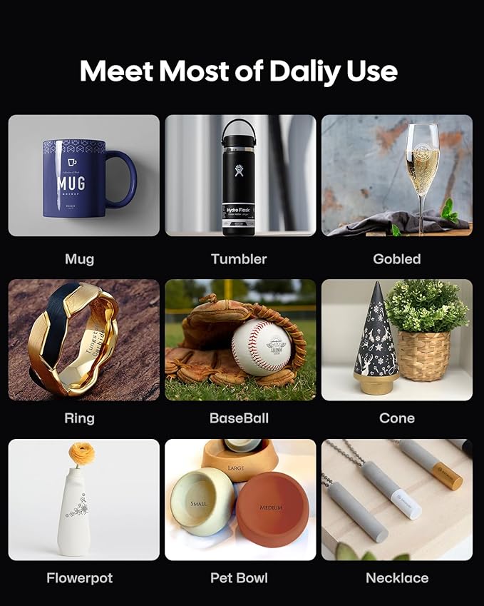 - Unlock 3X More Business Opportunities: Engrave Rings/Bottles/Spheres from 3mm to 200mm – Perfect for Jewelry Stores & Souvenir Shops. Charge $15-50/Engraving with Pro-Level 360° Wraparound Designs.