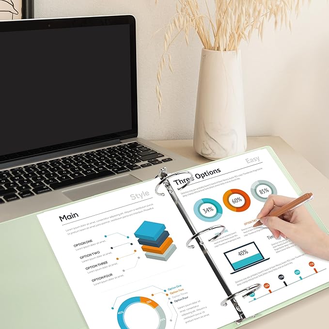 - LONG-TERM PRESERVATION: The 3 inch binder 3 ring is made of sturdy material and is moisture and dust resistant. This 3 in binder is PVC-free and non-stick. The color will always remain without fading during use. The durable rounded edges have a corner grinding process, which effectively prevents wear and tear