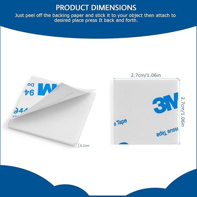 - Package Include: You will receive 5 sheets double sided mounting foam tapes, total 100 foam adhesive pads, each measuring 27 x 27mm (1.06 x 1.06 inches); thickness of 2 mm (0.08 inches).Designed to cater to a variety of your needs. This ample quantity ensures that your family will have a sufficient supply for an extended period.