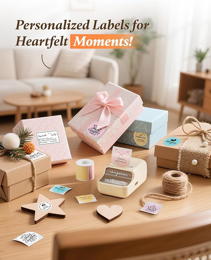 - 【Widely Use】 Can use variety styles of thermal label tapes, such as white, color, cable cord labels and rare transparent labels. It's ideal present for labeling Chritmas/Mother's day/Father's day/New Year's gift for kids family and friends.valentines day gifts for him