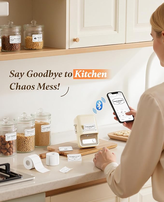 - 【Multifunctional Label Maker】 NIIMBOT B21 label maker can print labels in width 0.8''-2''. You can print product labels, address labels, ingredient labels, price labels, clothing labels, jewelry labels, etc. using functions such as text, pictures, QR codes, and barcodes. Comes with 1 pack of 50x30mm labels (230pcs/Roll) to use. Not for shipping labels