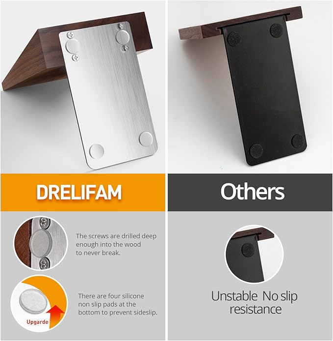 - PREMIUM MATERIAL: The heavy book stoppers are made of black walnut wood, so each one has a unique natural wood grain. Modern and classic in appearance, it is suitable for all occasions. The metal plate and screw parts are made of stainless steel, which is very suitable for long-term use in the bookshelf.