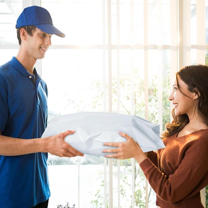 - Eye-Catch Poly Mailers Bags--- Usable size: 14.5x19 Inch, 100Pack. These shipping bags have a white outer surface, and gray inner lining, a highly attractive color that makes your products look better. Their smooth texture makes it easy to affix self-adhesive stamps and address labels, helping you customize your brand.